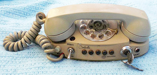 At first, I figured that this phone was a Cinderella phone but I found one of those on the web. It had the customary rotary dial and it was stamped Cinderella. One site assumed the dial served no purpose and was not functional. I suspect that the auction phone was an ITT Autocom mobile radiotelephone, for which I found an ad noting that the phone could be used to make “important calls,” change appointments, take customer calls, make emergency calls, hold conference calls, reroute shipments and communicate in isolated areas. It was obviously meant for businessmen.