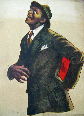 The man with the bugged-eyes, who’d just been shot in the back, was from a poster for the 1937 movie “Underworld” with Bee Freeman, Sol Johnson, Oscar Polk, Al “Slick” Chester and Ethel Moses. The man shot in the back may be Chester, who plays a mobster in the movie. Polk also played a servant named Pork in “Gone With the Wind” in 1939.